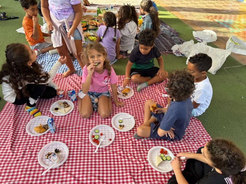 Als gemeinsamer Höhepunkt veranstaltete der gesamte Jahrgang ein gesundes Picknick mit vielen leckeren und abwechslungsreichen Speisen. Die Kinder konnten dabei spielerisch entdecken, wie bunt und köstlich gesunde Mahlzeiten sein können. Bei frischem Obst, Gemüse, Vollkornsnacks und selbstgemachten Köstlichkeiten genossen alle das Essen im Freien – eine wunderbare Gelegenheit, um zu erleben, dass gesunde Ernährung richtig Spaß macht!