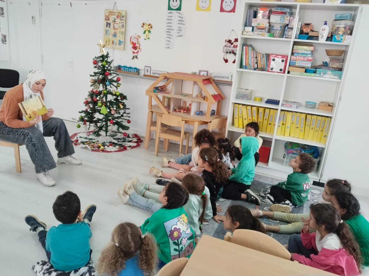 In dieser fröhlichen AG hören die Kinder einfache Geschichten auf Deutsch und erzählen sie mit Bildern, Puppen oder Bewegungen nach. Dabei lernen sie neue Wörter, üben das Zuhören und dürfen selbst kleine Geschichten erfinden und vorstellen. Sprache wird lebendig – und jedes Kind kann zum Geschichtenerzähler werden!