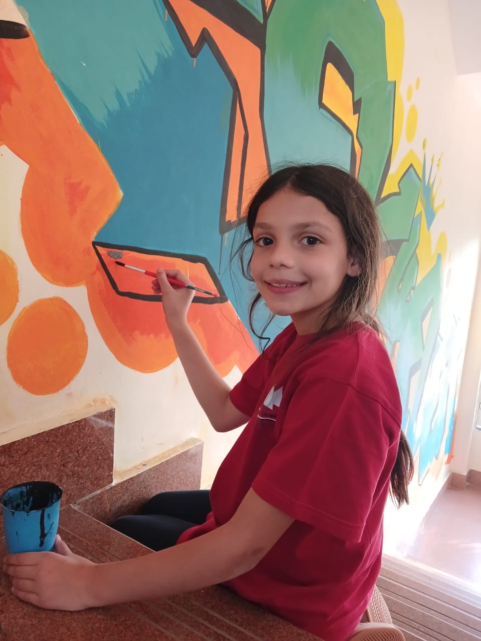 Im Graffiti-Workshop gestalten die Kinder gemeinsam eine Wand mit bunten, kreativen Motiven. Sie lernen verschiedene Techniken des Sprayens und Zeichnens kennen, setzen eigene Ideen um und erfahren, wie man Farben und Formen wirkungsvoll kombiniert. Kreativität, Teamarbeit und spielerisches Lernen stehen dabei im Vordergrund.