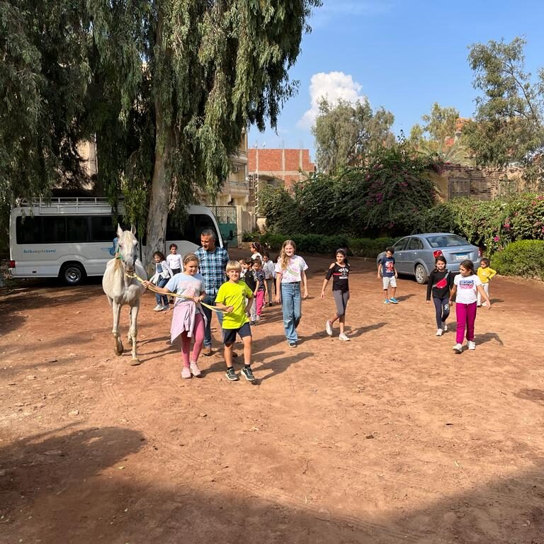 Um 5:00 Uhr morgens ging es von Kairo aus los und kamen gegen 7:00 Uhr an. Die Kinder sammelten dann die Jasminblüten, machten einen Rundgang durch eine der Fabriken und frühstückten dann zusammen in einem traditionellen Haus. Danach hatten sie noch Zeit zum Spielen und um sich noch einige Tiere anzuschauen. Gegen 15:00 Uhr fuhren sie nach Kairo zurück.