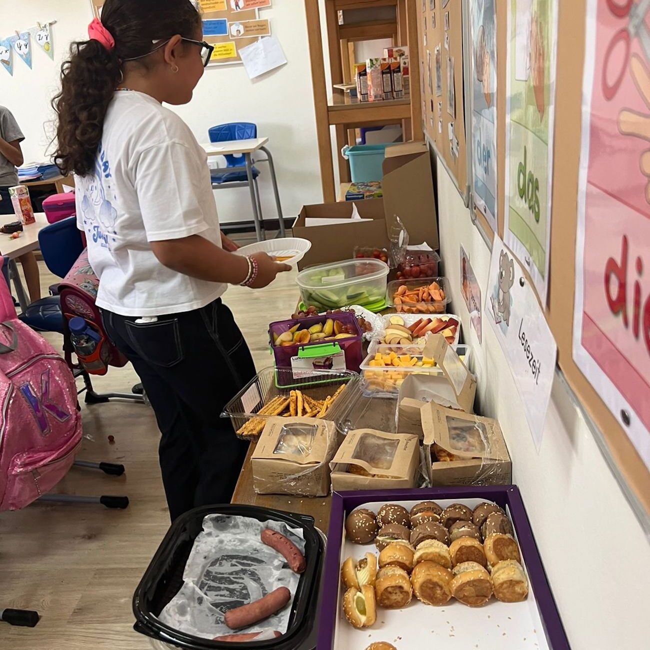 Das Erntedankfest in unserer Grundschule war ein voller Erfolg! Neben dem gemeinsamen Singen und den einzelnen Frühstücksbuffets in den Klassen haben wir uns sehr über die zahlreichen und tollen Beiträge der Kinder gefreut. Dabei wurden in unserer neuen Eventhalle Gedichte, Vorträge und Lieder vorgetragen. Außerdem haben die Kinder von der Grundschulleitung Informationen über das Erntedankfest erhalten.