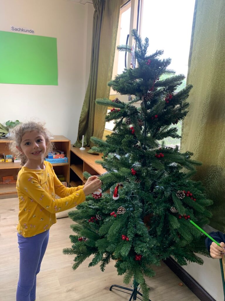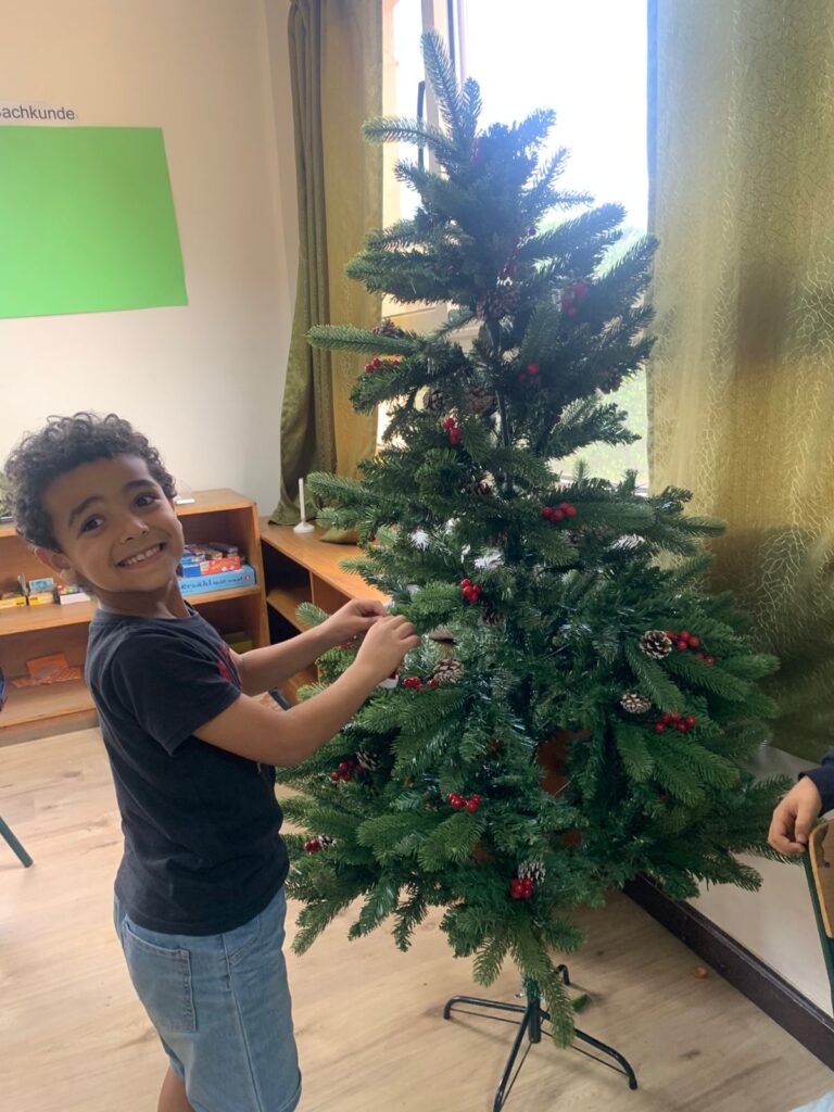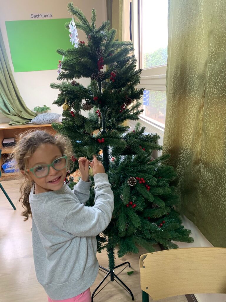 Die Klassen 1 und 3 haben begonnen, ihre Weihnachtsbäume mit viel Freude und Kreativität zu schmücken. Gemeinsam gestalteten die Kinder ihren eigenen Baumschmuck und sorgten so für eine festliche Stimmung in den Klassenräumen.