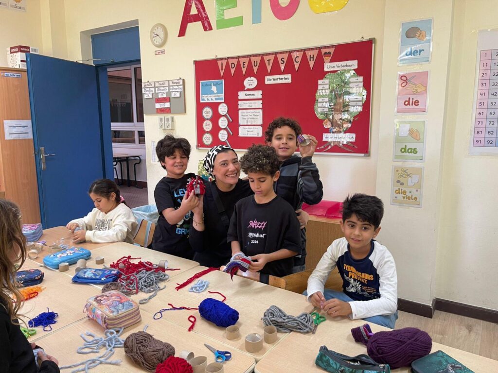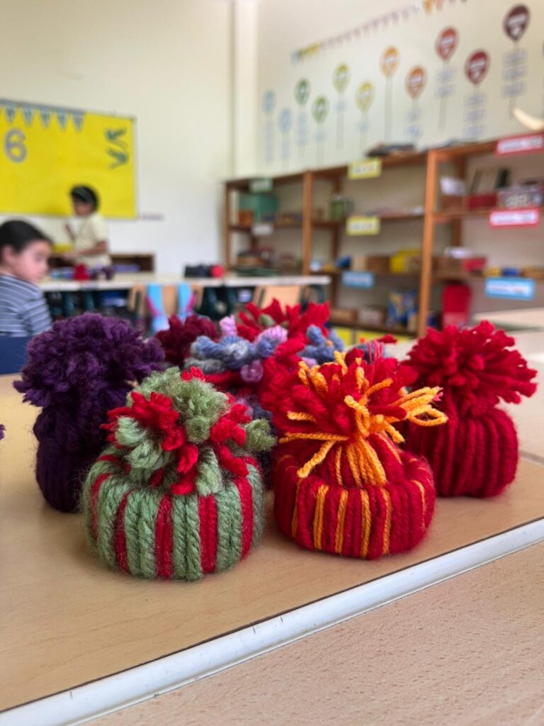 Auch die Elternaktionen haben begonnen: Im Rahmen einer Weihnachtsaktivität in Klasse 2 entstanden liebevoll gefertigte Mini-Wollmützen, die zusätzlich weihnachtlichen Zauber verbreiten.