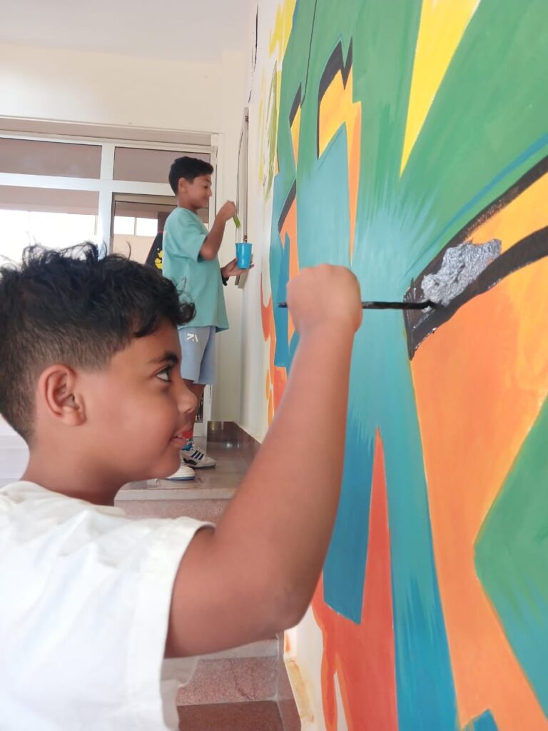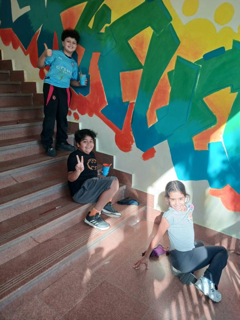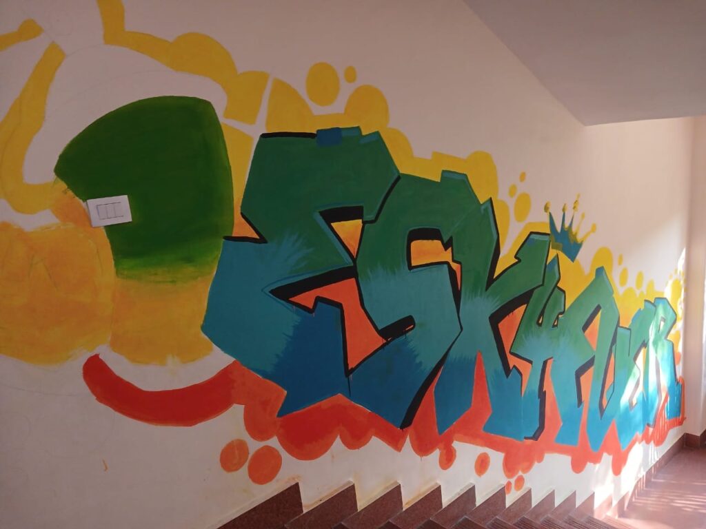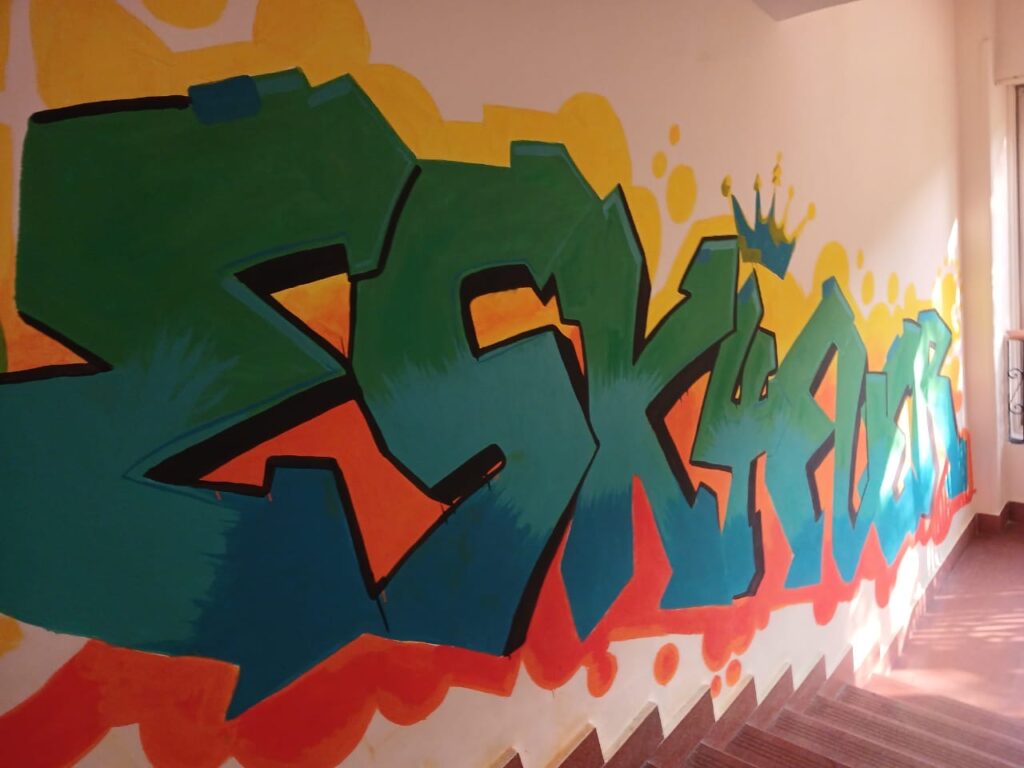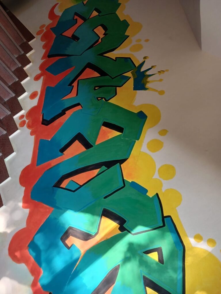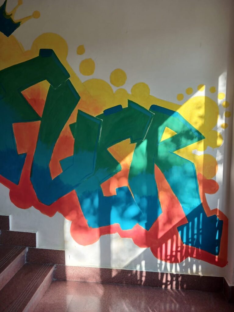 Die Graffiti-AG hat ihr erstes gemeinsames Wandbild im Gebäude der Grundschule gestaltet. Die SchülerInnen konnten ihrer Kreativität freien Lauf lassen, Farben, Formen und Motive ausprobieren und das Schulgebäude mit einem bunten Kunstwerk verschönern. Ein spannendes Projekt voller Teamarbeit, Gestaltungsideen und Freude am künstlerischen Ausdruck!