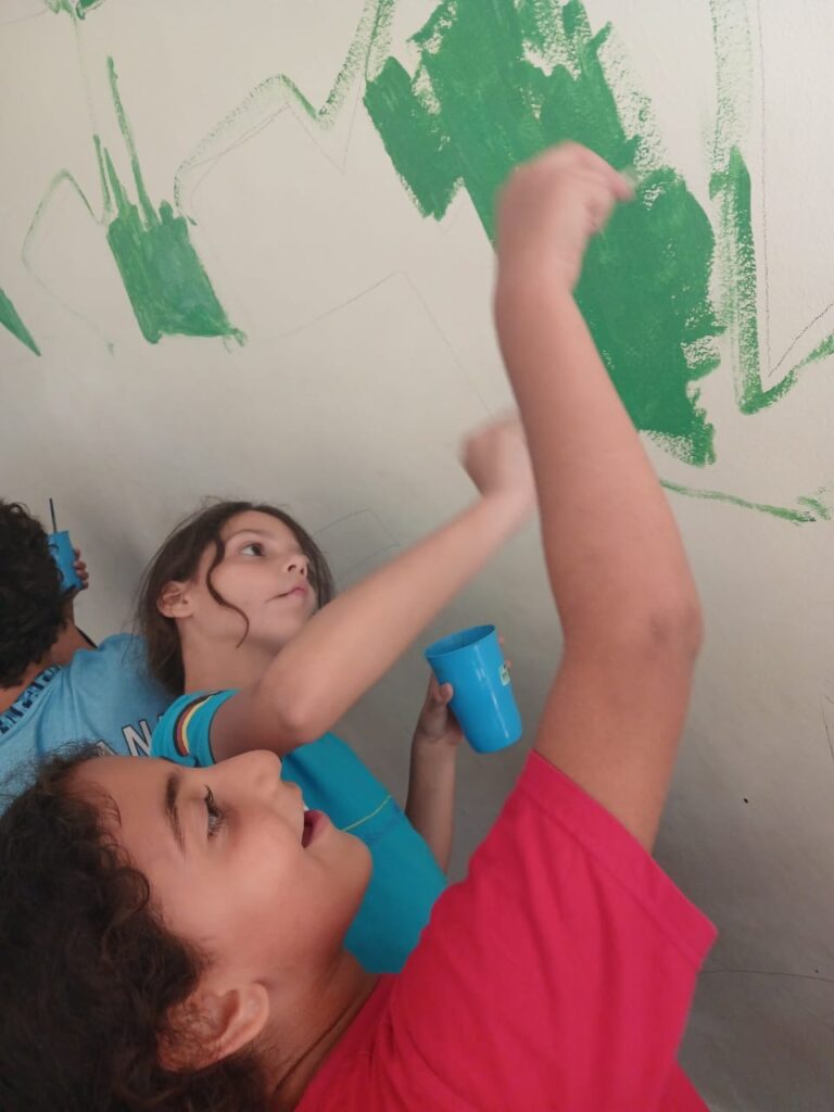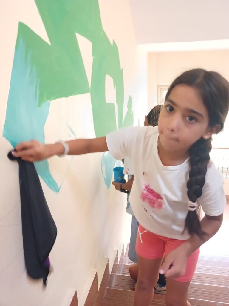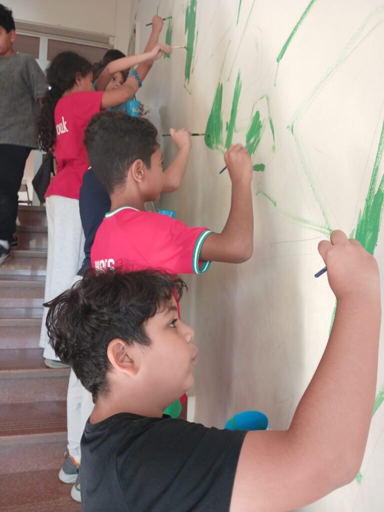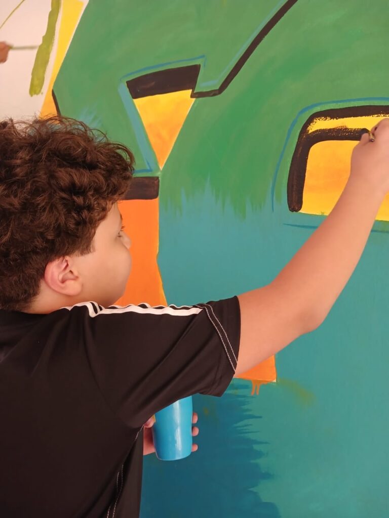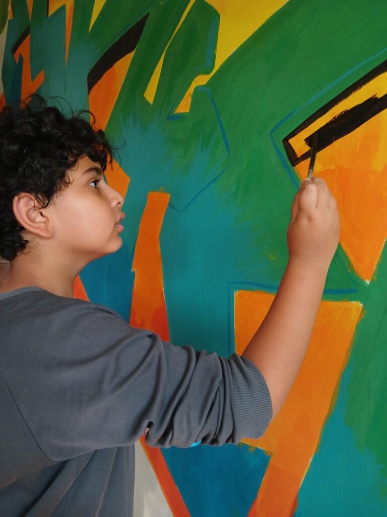 Die Graffiti-AG hat ihr erstes gemeinsames Wandbild im Gebäude der Grundschule gestaltet. Die SchülerInnen konnten ihrer Kreativität freien Lauf lassen, Farben, Formen und Motive ausprobieren und das Schulgebäude mit einem bunten Kunstwerk verschönern. Ein spannendes Projekt voller Teamarbeit, Gestaltungsideen und Freude am künstlerischen Ausdruck!