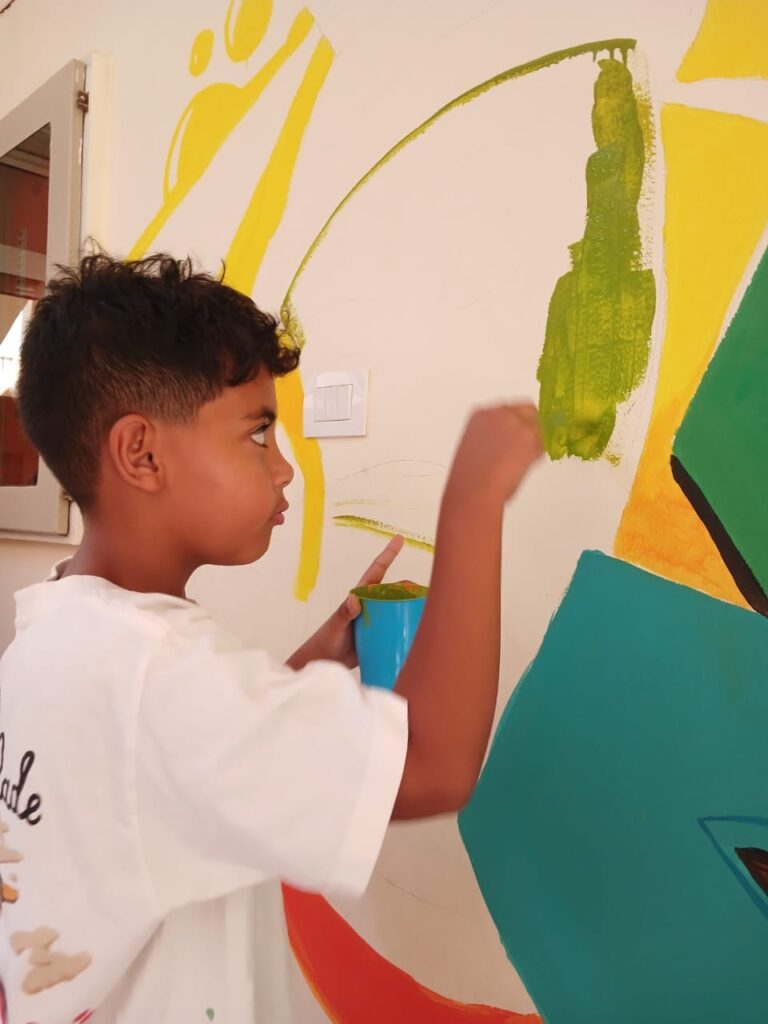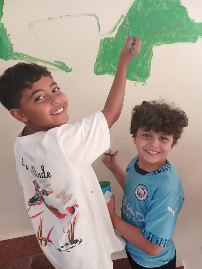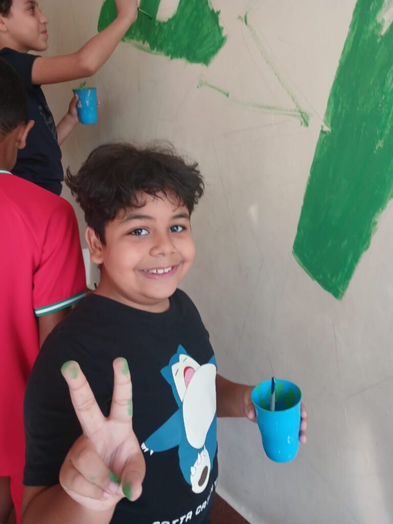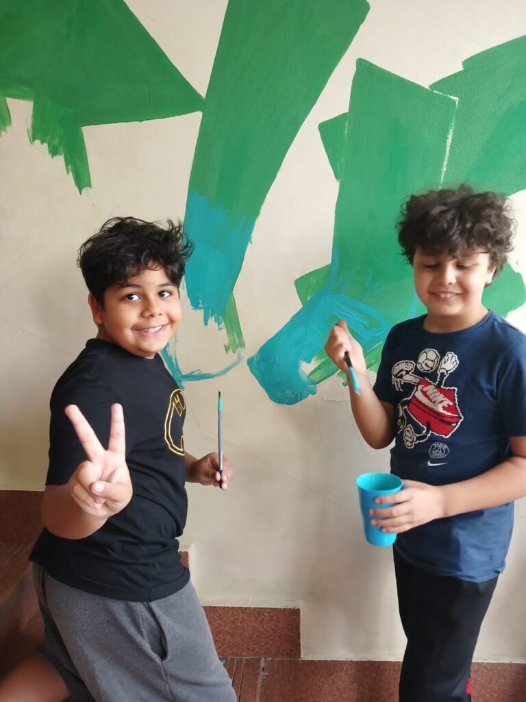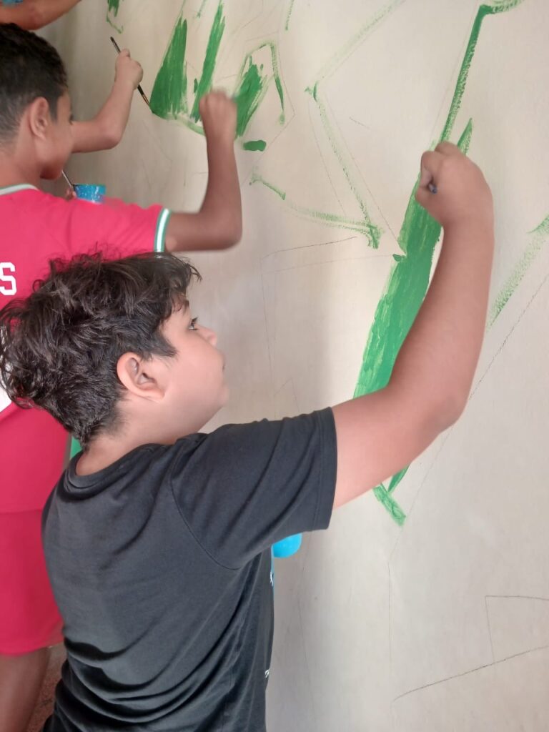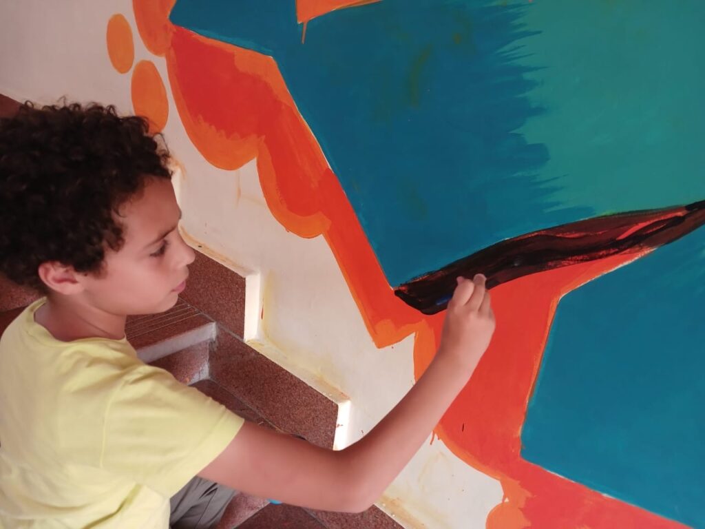 Die Graffiti-AG hat ihr erstes gemeinsames Wandbild im Gebäude der Grundschule gestaltet. Die SchülerInnen konnten ihrer Kreativität freien Lauf lassen, Farben, Formen und Motive ausprobieren und das Schulgebäude mit einem bunten Kunstwerk verschönern. Ein spannendes Projekt voller Teamarbeit, Gestaltungsideen und Freude am künstlerischen Ausdruck!