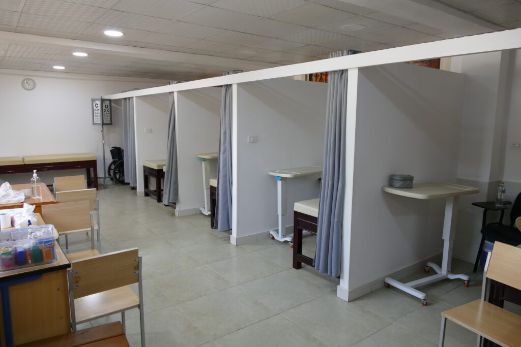 Sie verfügt über vier separate Betten, ein Untersuchungsbett, eine Trage und einen Rollstuhl. Zusätzlich ist sie mit Notfallmedikamenten, chirurgischem Ersatz und einem tragbaren Sauerstoffgerät ausgestattet.