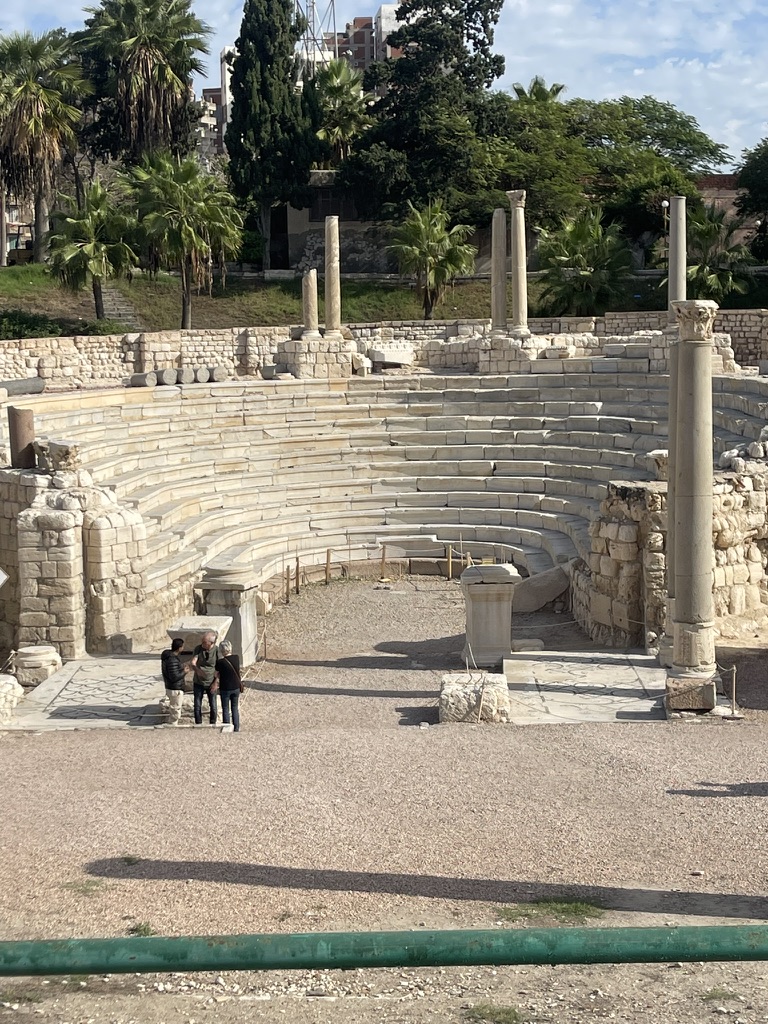 Während der Exkursion standen zahlreiche bedeutende Kultur- und Lernorte auf dem Programm. Am ersten Tag besuchte die Gruppe die Katakomben von Kom el Schukafa, das römische Amphitheater sowie die Bibliothek von Alexandria. Nach dem Einchecken im Hotel folgten der Besuch der Kait-Bey-Zitadelle und ein gemeinsames Abendessen in einem Fischrestaurant an der Corniche.