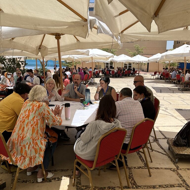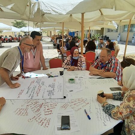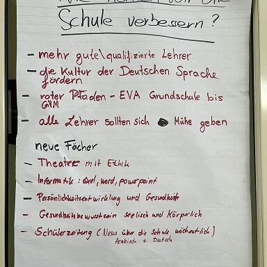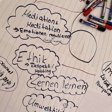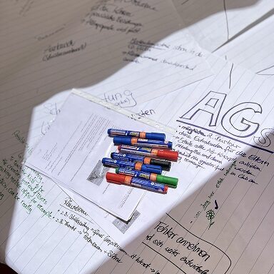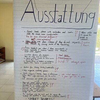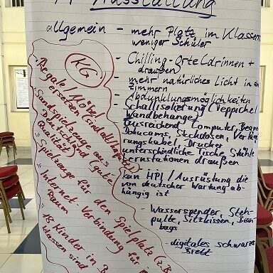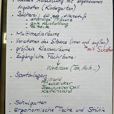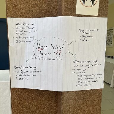 Unser diesjähriger Pädagogischer Tag fand am 24. Mai in der besonderen Form einer Zukunftswerkstatt statt: Gemeinsam mit Schüler:innen und Eltern haben sich die Kolleg:innen damit beschäftigt, wie wir uns unsere Schule in Zukunft wünschen. Gemeinsam sammelten wir Ideen und Anregungen zu einer Vielzahl von Fragen wie: Wie muss unsere Schule gestaltet sein, damit personalisiertes Lernen möglich wird? Wie ändert sich dabei die Lehrer:innenrolle bzw. die Schüler:innenrolle? Wie sollen die Räume dafür aussehen? Welche Strukturen brauchen wir für das digitale Lernen, und welche Möglichkeiten bietet es? An welchen außerschulischen Lernorten sollen unsere Schüler:innen lernen? Wie können wir den Gedanken der Begegnungsschule wieder aufleben lassen?