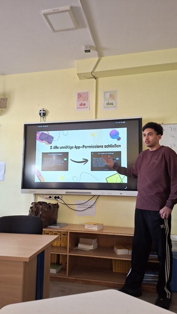 Anschließend erstellten die Schülerinnen und Schüler eigene Präsentationen zu zentralen Themen der Online-Sicherheit – darunter digitale Spuren, der Umgang mit persönlichen Daten, das Erkennen von Fake-Inhalten sowie konkrete Schutzmaßnahmen.