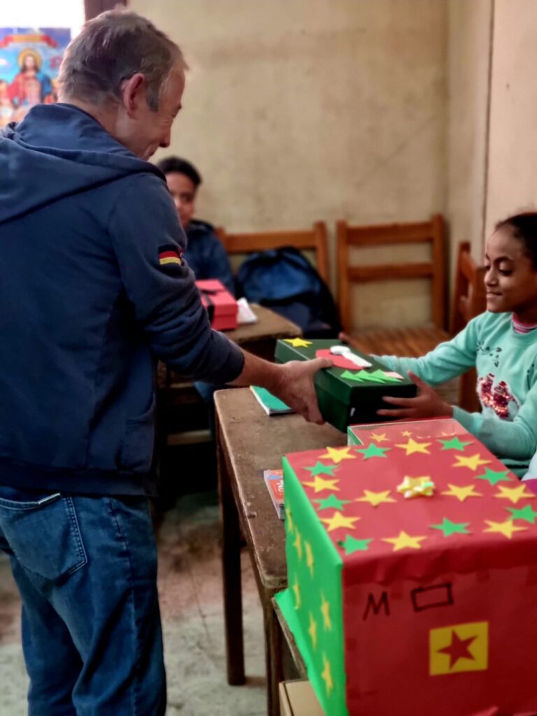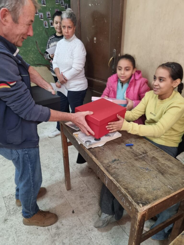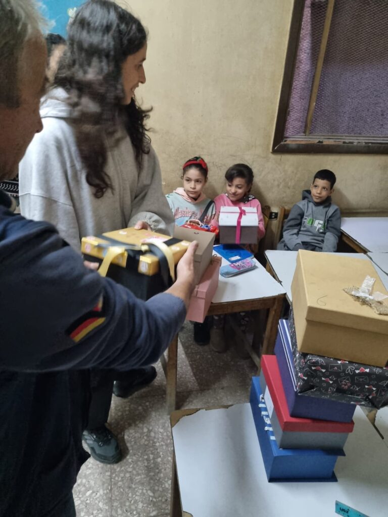 Am 20.12.2025 besuchte der Sozialkreis die Nachhilfeschule in Ezbet el Nakhl, um dort die Weihnachtsgeschenke zu verteilen. Diese waren zuvor von unseren Schülerinnen und Schülern aus der Grundschule und dem Gymnasium gesammelt worden.