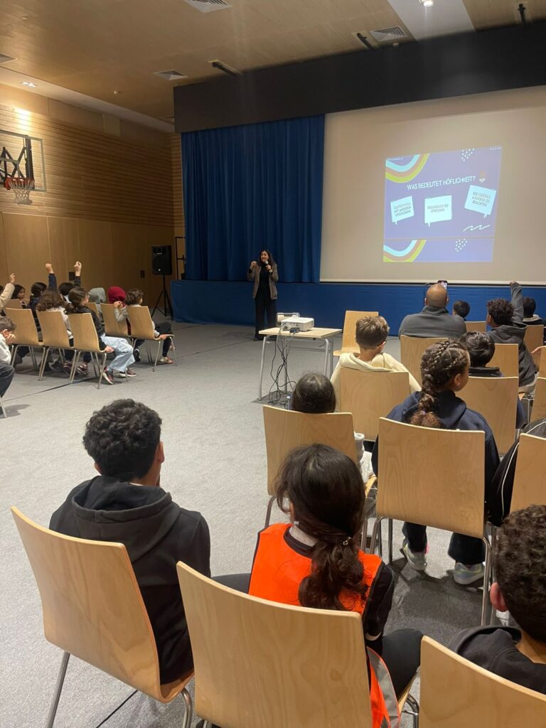 Beim Treffpunkt der Klassen 3 und 4 stand der Wert Höflichkeit im Mittelpunkt. Gemeinsam sprachen die Schülerinnen und Schüler darüber, was Höflichkeit bedeutet und wie sie im Schulalltag gelebt werden kann – durch respektvolles Sprechen, aufmerksames Zuhören und einen freundlichen Umgang miteinander. Dabei sammelten sie viele Beispiele, wie schon kleine Gesten das Miteinander positiv beeinflussen können. In diesem Rahmen wurden auch die neuen Streitschlichterinnen und Streitschlichter vorgestellt. Sie präsentierten ihre Aufgaben und erklärten, wie sie ihre Mitschülerinnen und Mitschüler bei Konflikten unterstützen. Der Treffpunkt verband soziale Bildung und Mitverantwortung auf schöne Weise und zeigte, wie wichtig Höflichkeit, Verantwortung und gegenseitiger Respekt für ein positives Schulklima sind.
