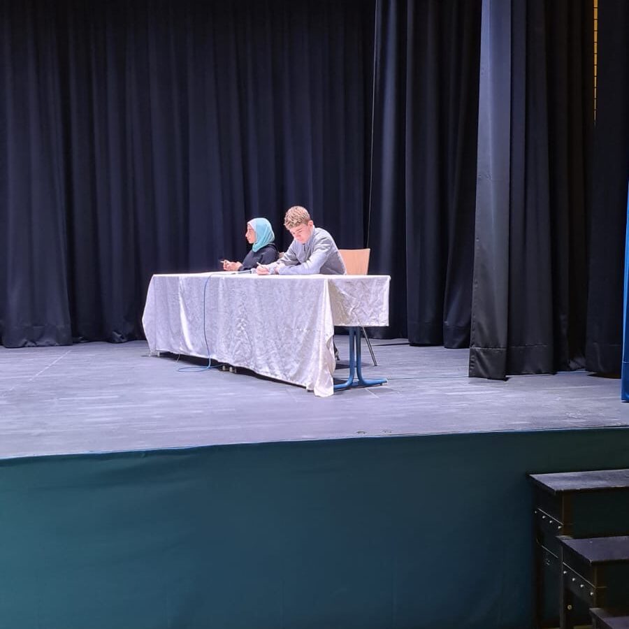 Letzten Donnerstag war es soweit: Der Vorlesewettbewerb wurde in der Eventhalle ausgetragen. Insgesamt 17 motivierte und gut vorbereitete SchülerInnen haben in zwei Runden den Wettbewerb bestritten. Am Ende konnten sich zwei Siegerinnen durchsetzen: Lamar Zikry aus der 6A und Lara Schäfer aus der 7C. Beide werden nun am 19.04.2024 in Alexandria an der DSB am Finale teilnehmen und dort auf die GewinnerInnen der anderen Deutschen Schulen aus Ägypten treffen. Es bleibt spannend und wir werden weiter davon berichten!